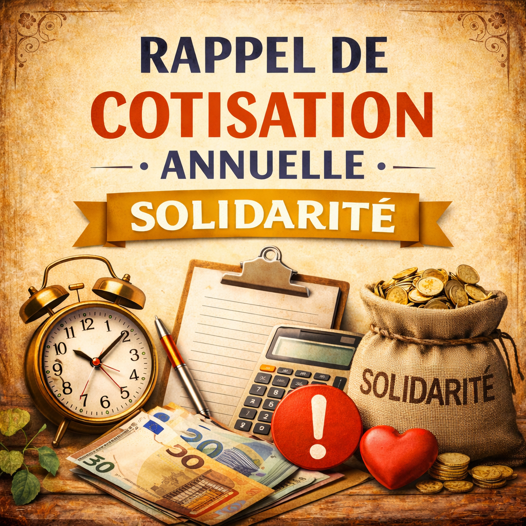 Ce flash de début d’année vient rappeler à tous les adhérents de l’an passé de bien vouloir renouveler leur adhésion. A cet effet, je remercie tous ceux qui m’envoient leur adhésion en bonne et due forme sans appel de ma part. Les personnes, dont le dossier est en cours auprès de notre Président sont aussi appelé à se mettre à jour de leur cotisation. Depuis 2025, le montant de l’adhésion est de 30€.