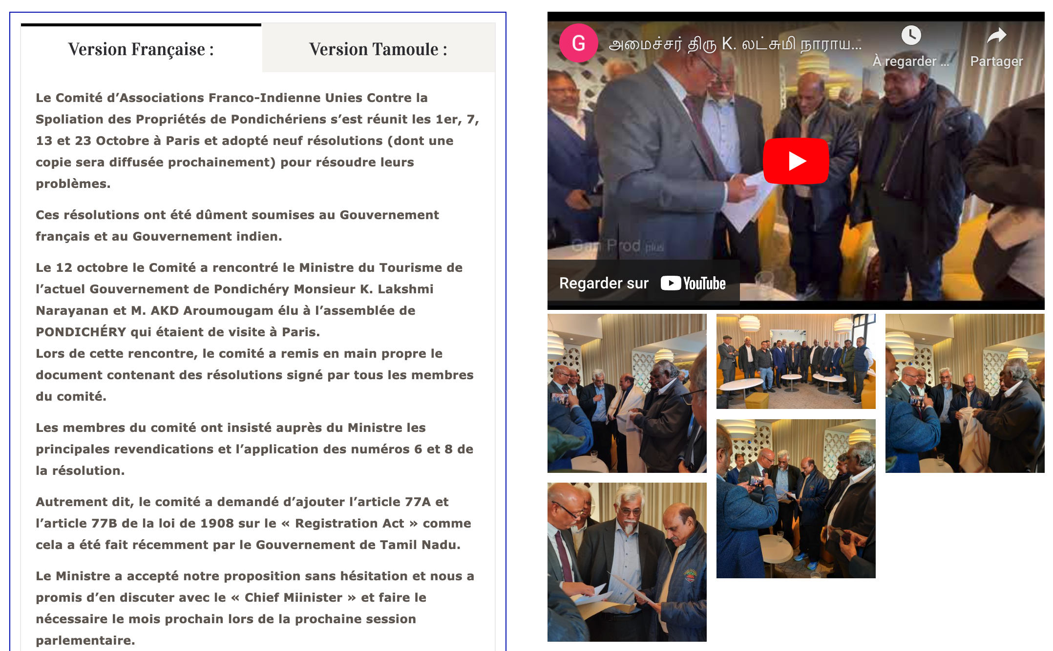 Le Comité d’Associations Franco-Indienne Unies Contre la Spoliation des Propriétés de Pondichériens s’est réunit